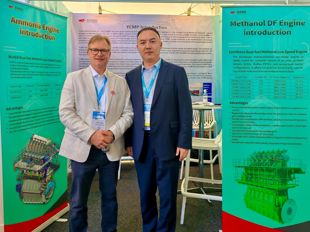 此次参展,公司主要推广三款新燃料产品:LNG双燃料机、甲醇双燃料机和氨双燃料机,以满足海事行业日益增长的可持续发展需求。在DONS?海事展期间,邓辉总经理带领团队与客户进行了深入且富有成效的面对面交流。让客户直观感受到凯发k8天生赢家一触即发船动在三款新燃料产品的技术积淀和对前沿探索的坚持。在交流过程中,客户们对新燃料的技术细节、成本效益、市场推广以及法规适应性等方面提出了诸多宝贵的问题与建议。通过与客户的互动交流,公司也进一步了解到海事行业在可持续发展道路上所面临的挑战与需求,这种深度的沟通不仅加深了客户对公司产品的信任与认可,更为未来的合作奠定了坚实基础。